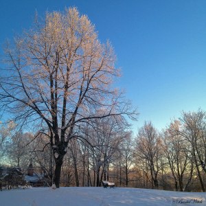 • Vintrig enslig parkbänk på Blåkulla