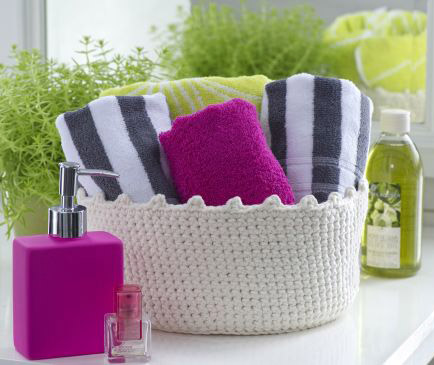 Du har säkert sett dessa virkade korgar i inredningsbutikerna. De finns i mängder av storlekar och färger.