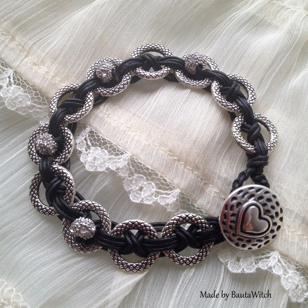 • Svart skinnarmband med ringar made by BautaWItch