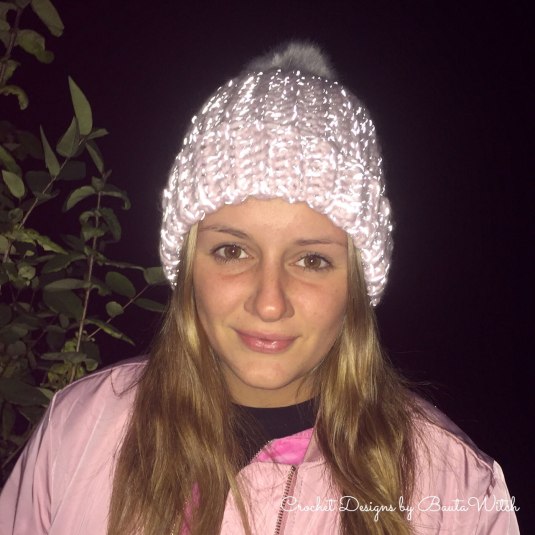 Hej. Tack för att du delar med dig av ditt mönster. Jag virkade mössan i ett annat reflexgarn ‘Cosmos’ med virknål 8. Sen gjorde jag en tofs i samma garn då jag inte hade en pälstofs. Jag är väldigt nöjd, den blev kanske lite tajt, virkade ändå 53 varv innan jag virkade ihop den. Det blir nog en till mössa för den var så rolig att göra!