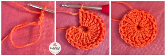 Varv 1: Virka 18 dst runt den magiska ringen (den första dst = 4 lm) och avsluta med en sm i den 4:e lm på din första dst.