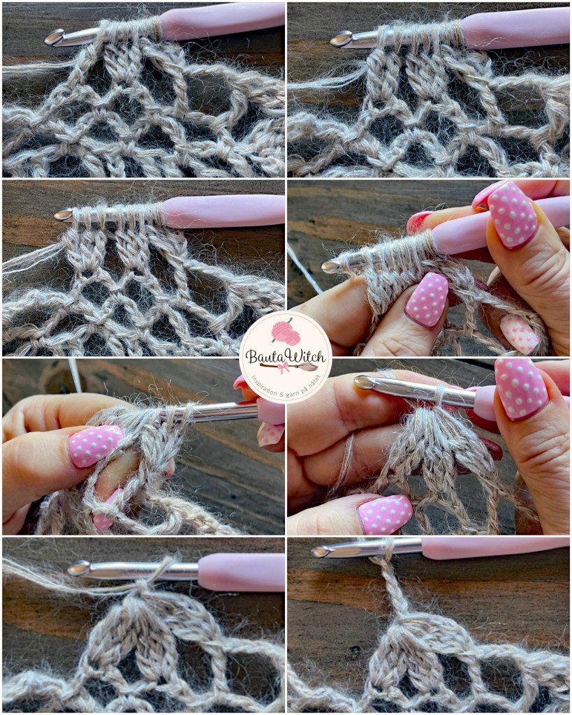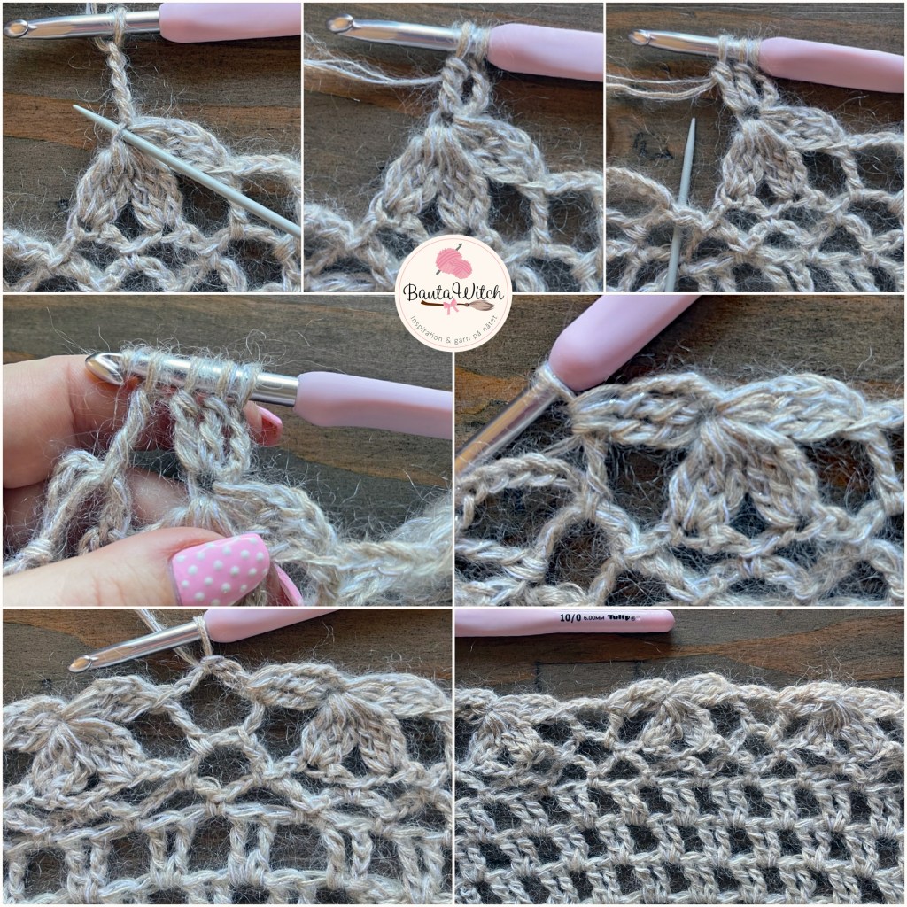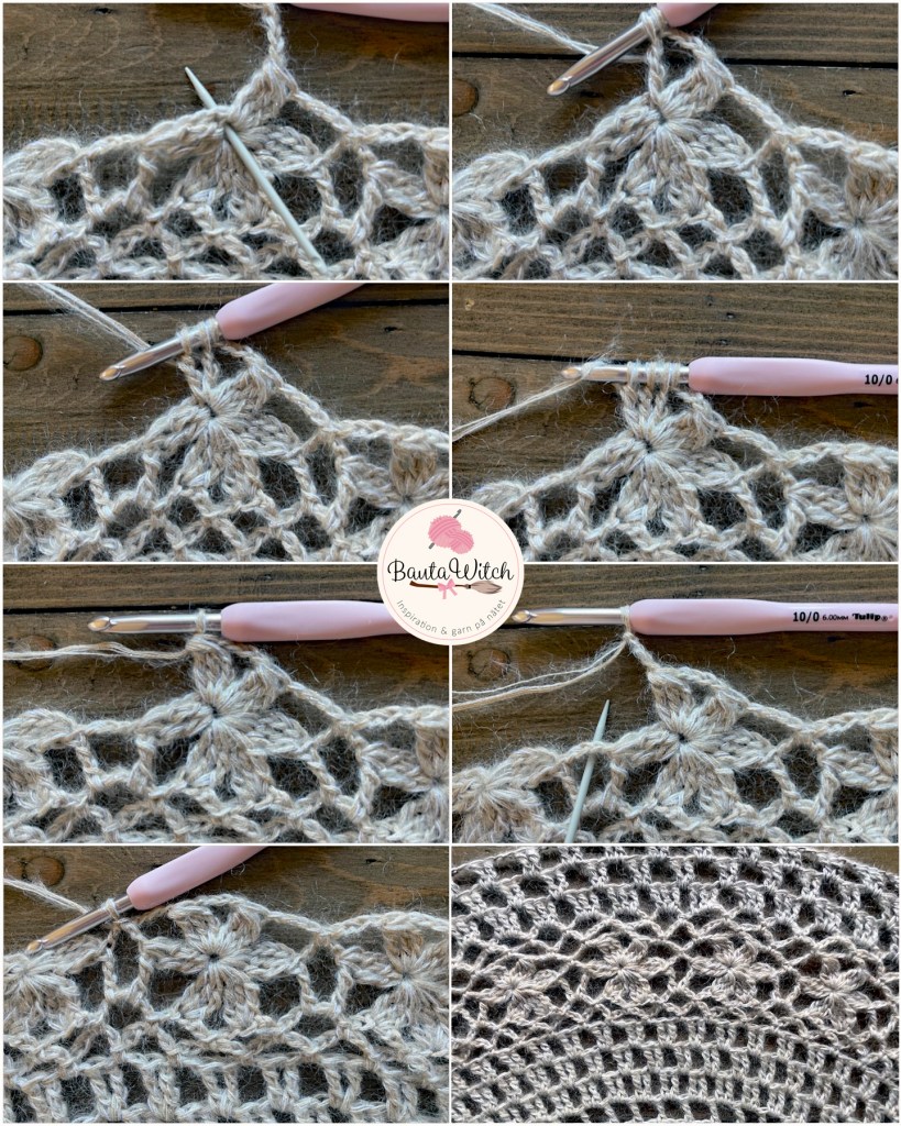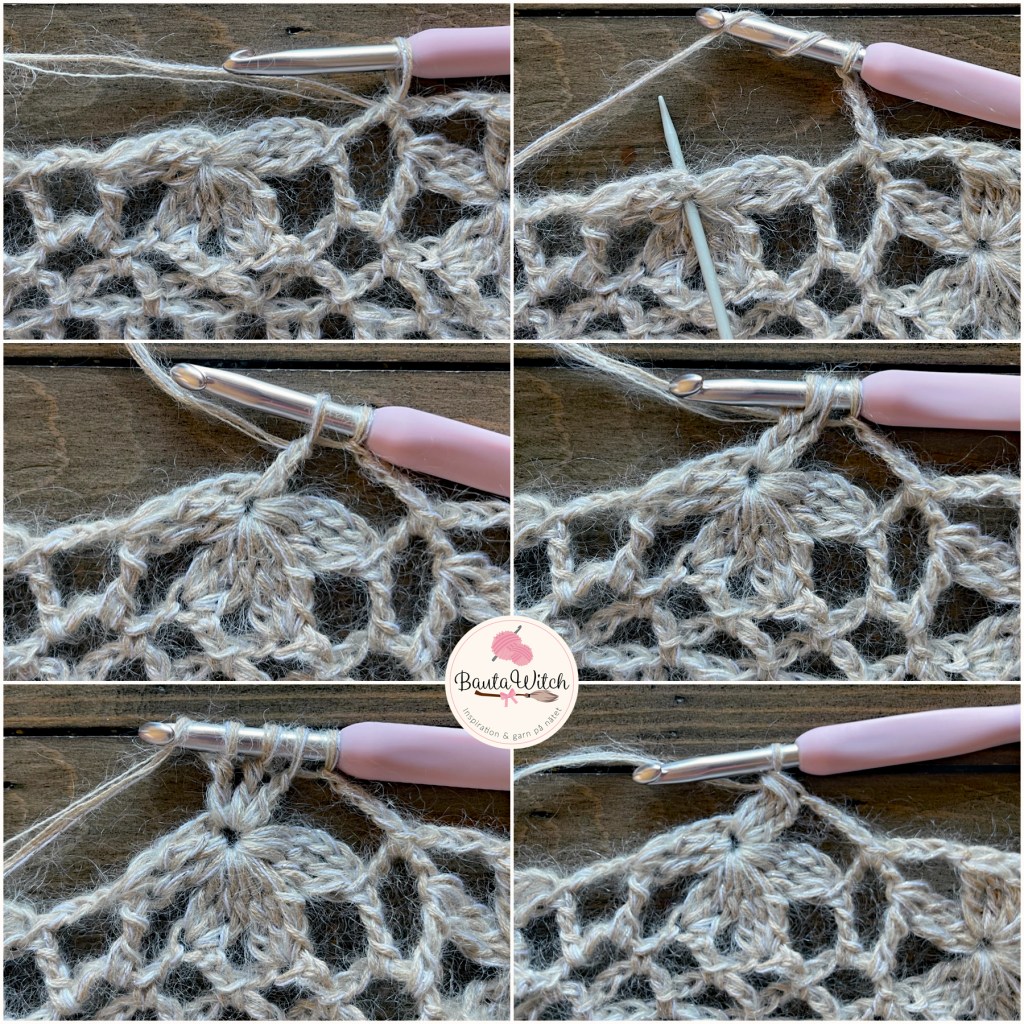 OBS! Bilderna ovan är de samma jag använt till min asymmetriska poncho så bortse från den sista i collaget med 3 st i lmb. Så ska du INTE virka ditt varv 12.