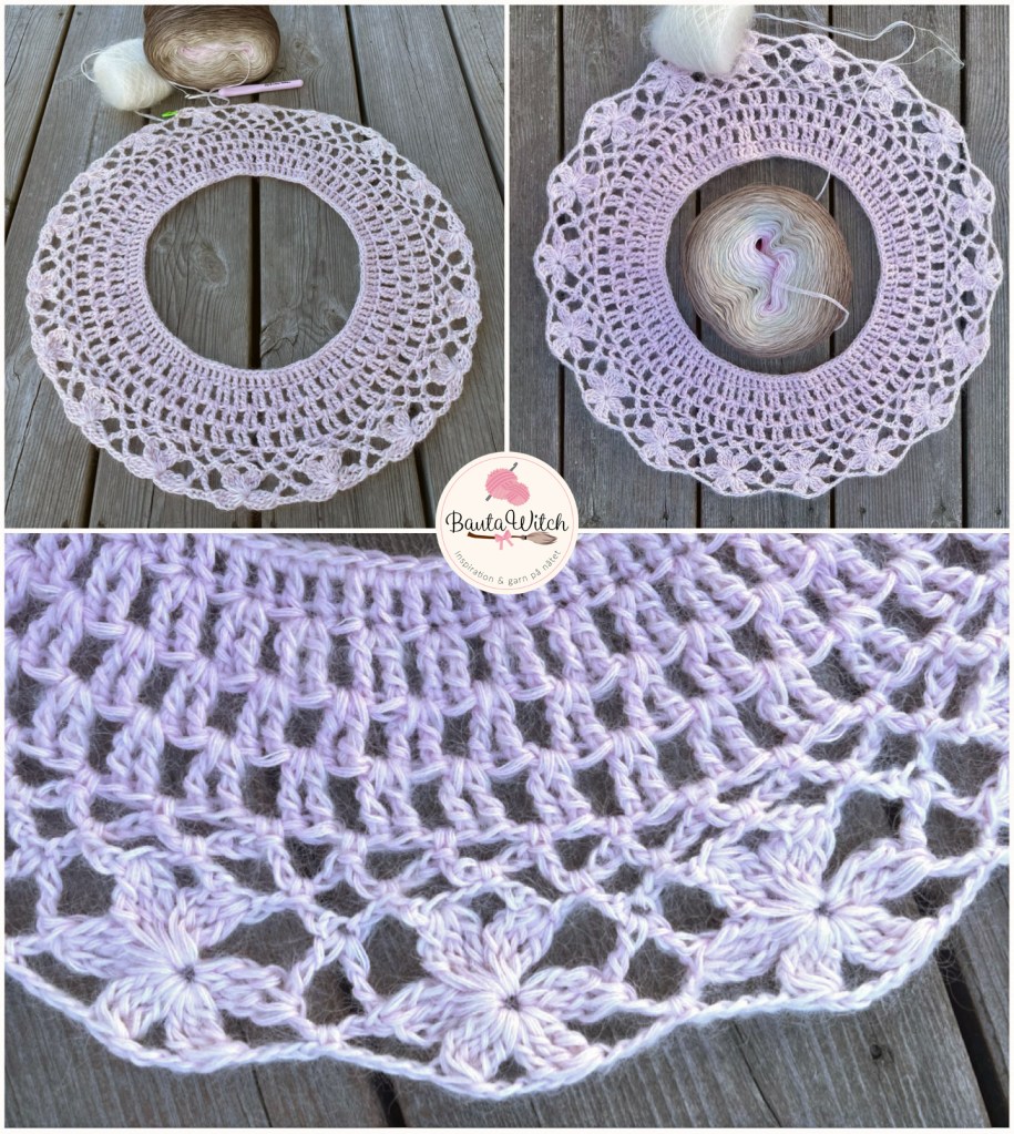 Nu avslutar vi blompartiet med 2 varv av lmb: