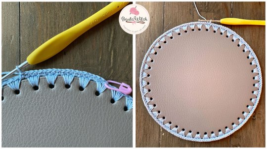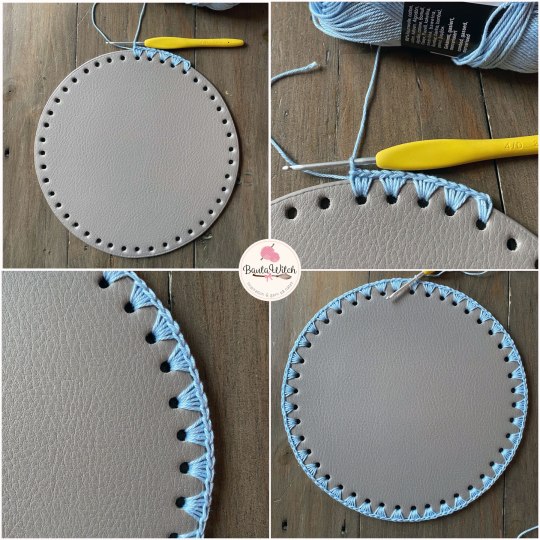VIKTIGT! Var noga med att virka/sy fast handtagen så att sömmen hamnar “inåt/neråt” mot väskan och inte på utsidan så den syns.