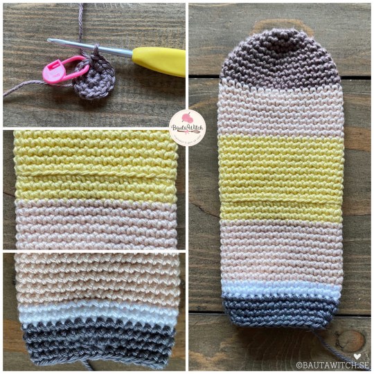 Du virkar fm runt, runt och använder dig av en markör eller garnände för att hålla koll på var dina varv börjar och slutar. Personligen tycker jag det är enklast att alltid placera markören i maska 1 på varven.