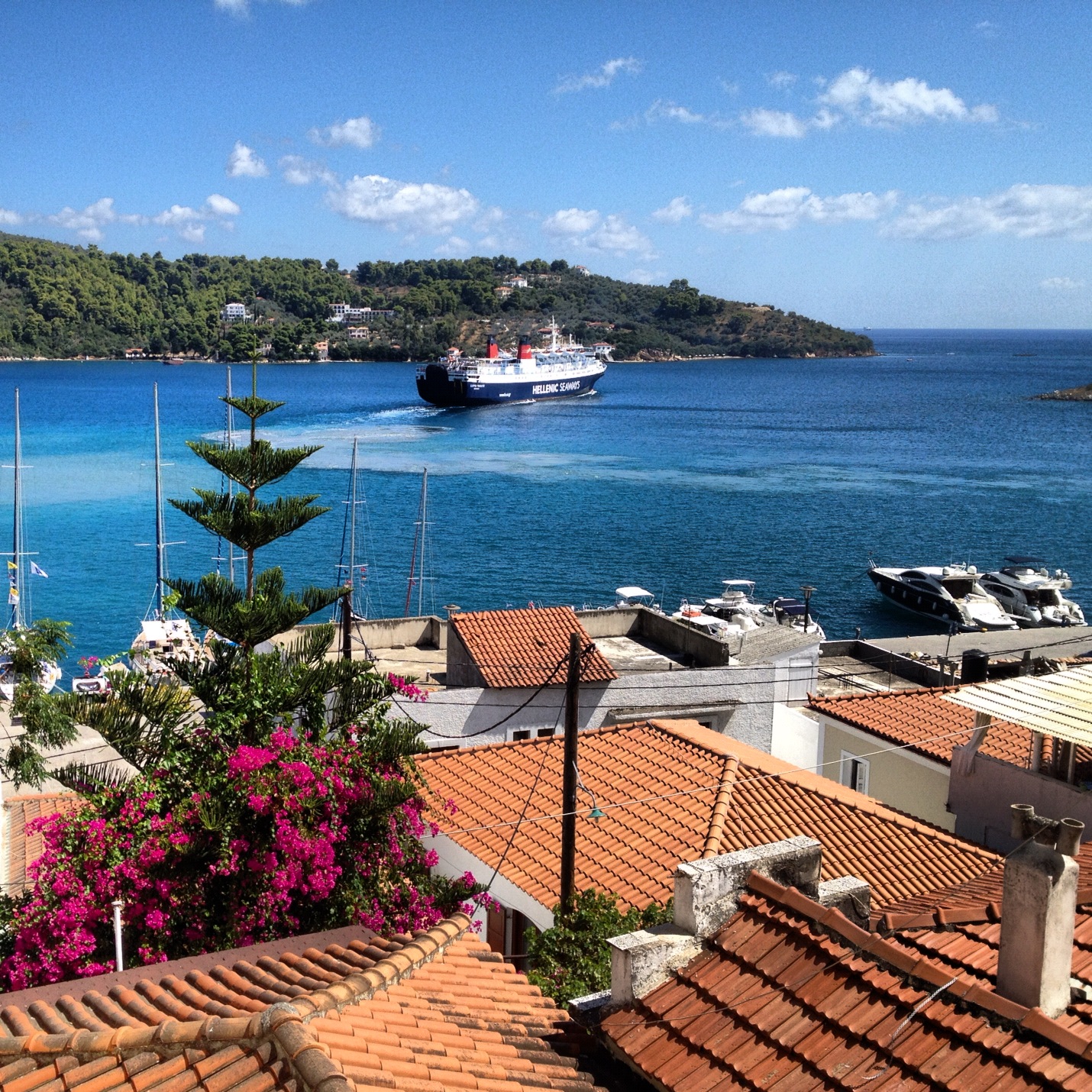 Skiathos hamn från vår balkong