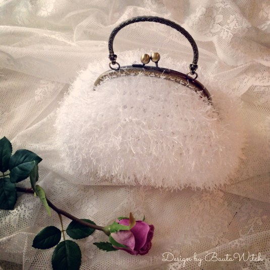 Denna väska har en mer detaljerad design (vilket är lättare när man jobbar med ett tunt garn) än de väskor i Ribbon XL som jag tidigare delat mina mönster på här i bloggen: Rosettväskan, Blomsterväskan och Regnbågsväskan.