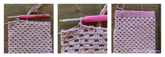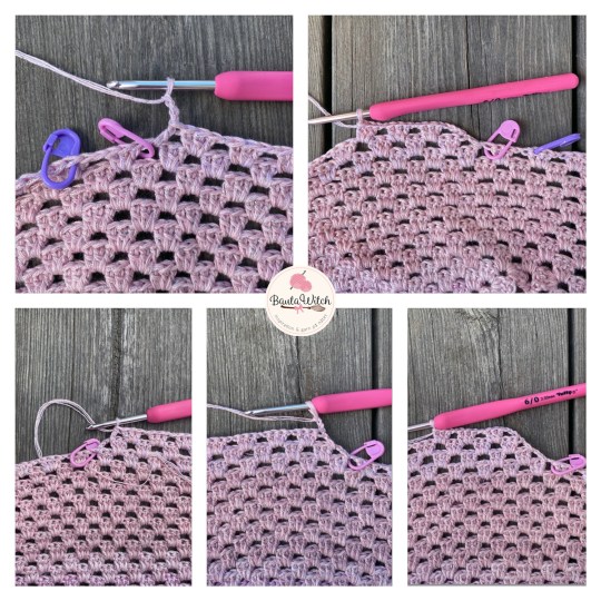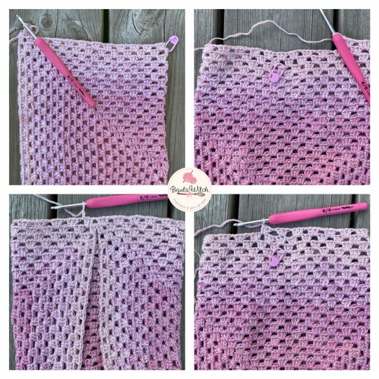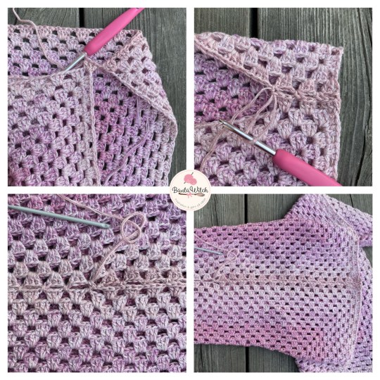 Vik dubbel och virka ihop kortsidorna med fm. Ta av garnet.