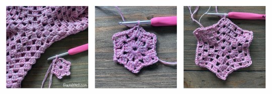 Du virkar fm runt, runt och använder dig av en markör eller garnände för att hålla koll på var dina varv börjar och slutar. Avsluta dina delar med 1 sm och lämna ändar som är ca 15-20 cm långa så du kan använda dem att sy ihop delarna med.