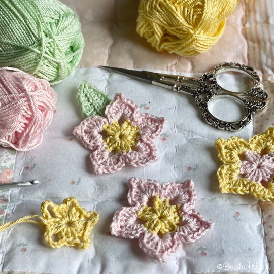 This is the link to the original pattern: Anabelia’s Five petals tiny flower for all English and Spanish speaking crocheters.