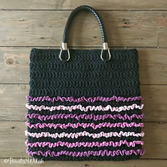 Väskan är oerhört lättvirkad. Perfekt även för nyböjaren. Det är i stort sätt bara fasta maskor, så hur enkelt som helst! Är du en hyfsat van virkerska/virkare har du den klar på 2 kvällar. Du kan även variera virksätten i oändlighet om du vill att din väska ska få ett mer ”eget” utseende.