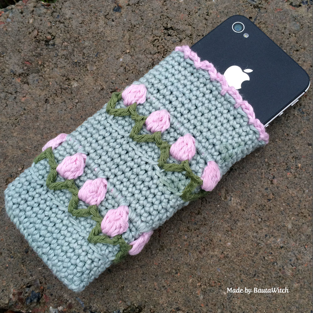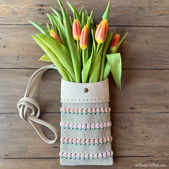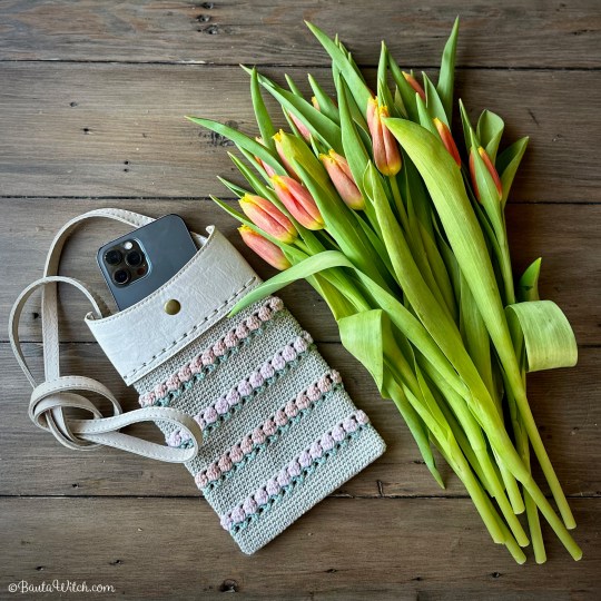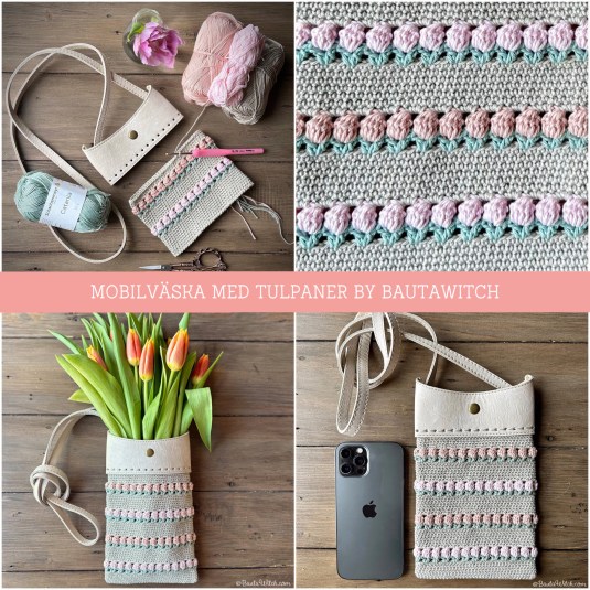 Tulpanmotivet som jag valt att använda till denna väska är ett av mina favoritmönster! Jag har använt det både till löpare, kudde, poncho, som bård på en pläd och faktiskt även ett litet mobilfodral redan tidigare. Du hittar samtliga mönster här!