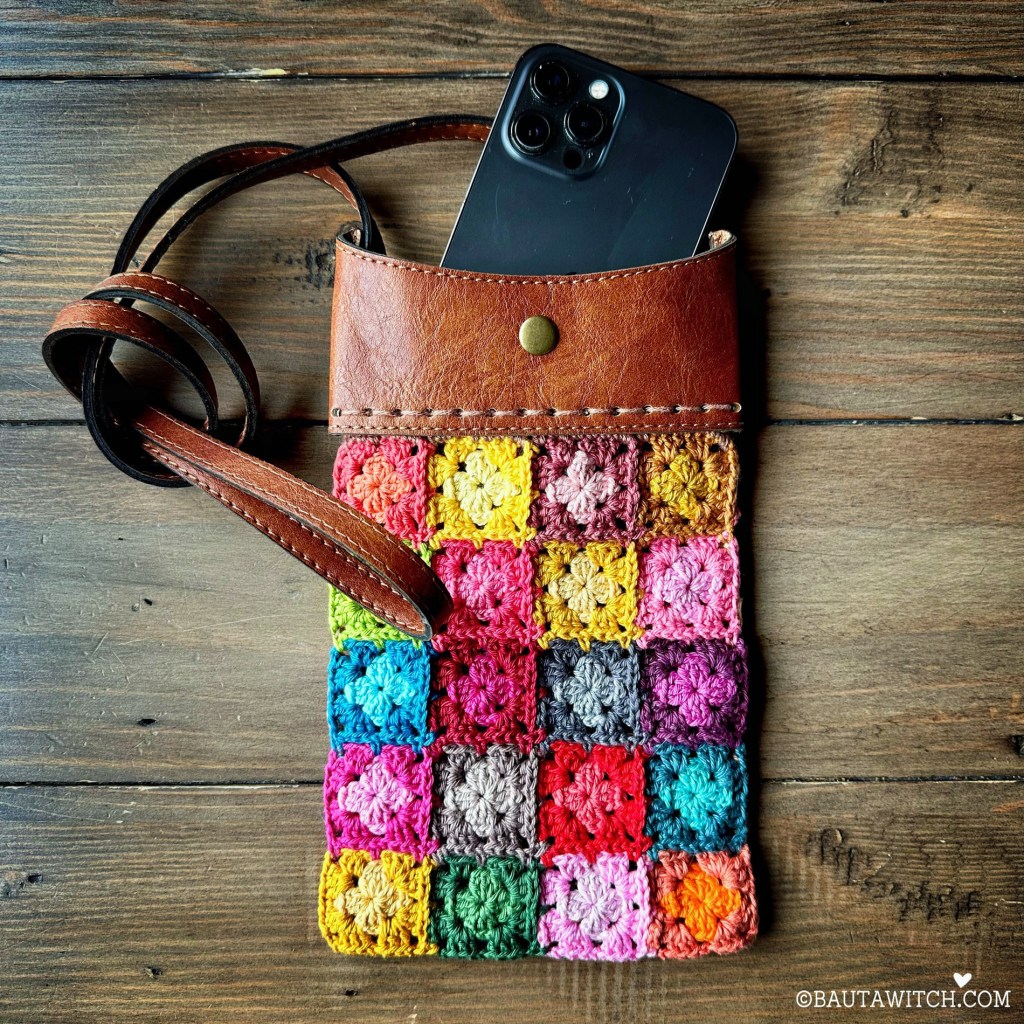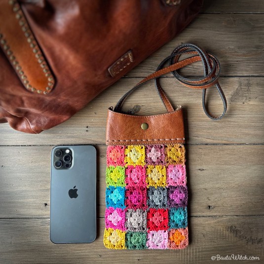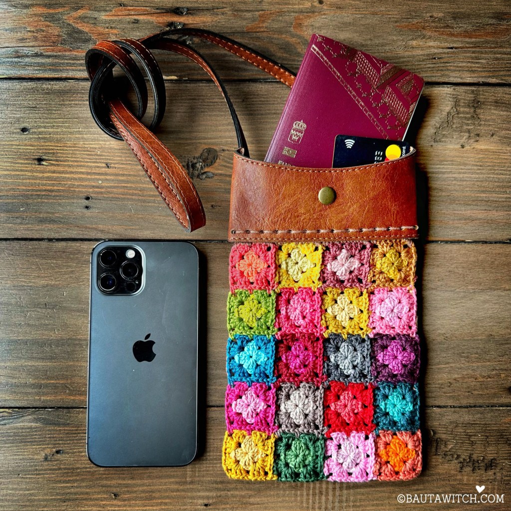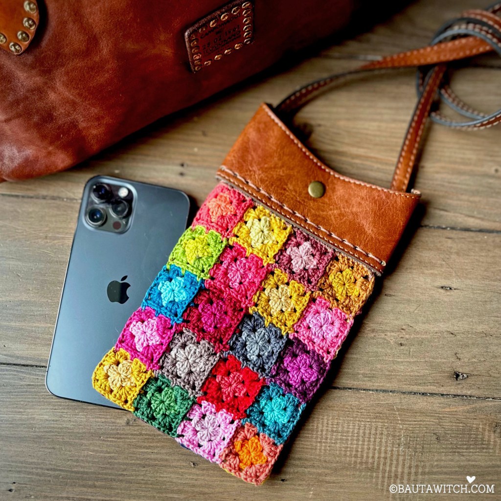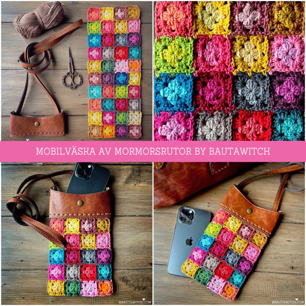 Jag har även gjort ett mönster till en mobilväska med mormorsrutor och den konjaksfärgade ovandelen. Det hittar du här!