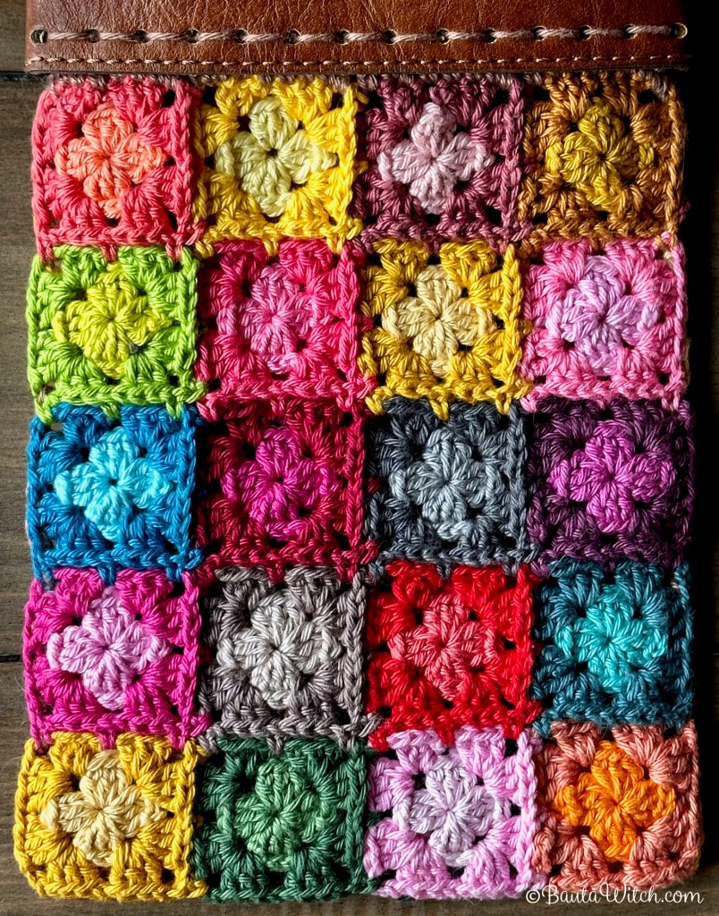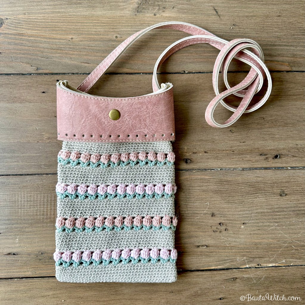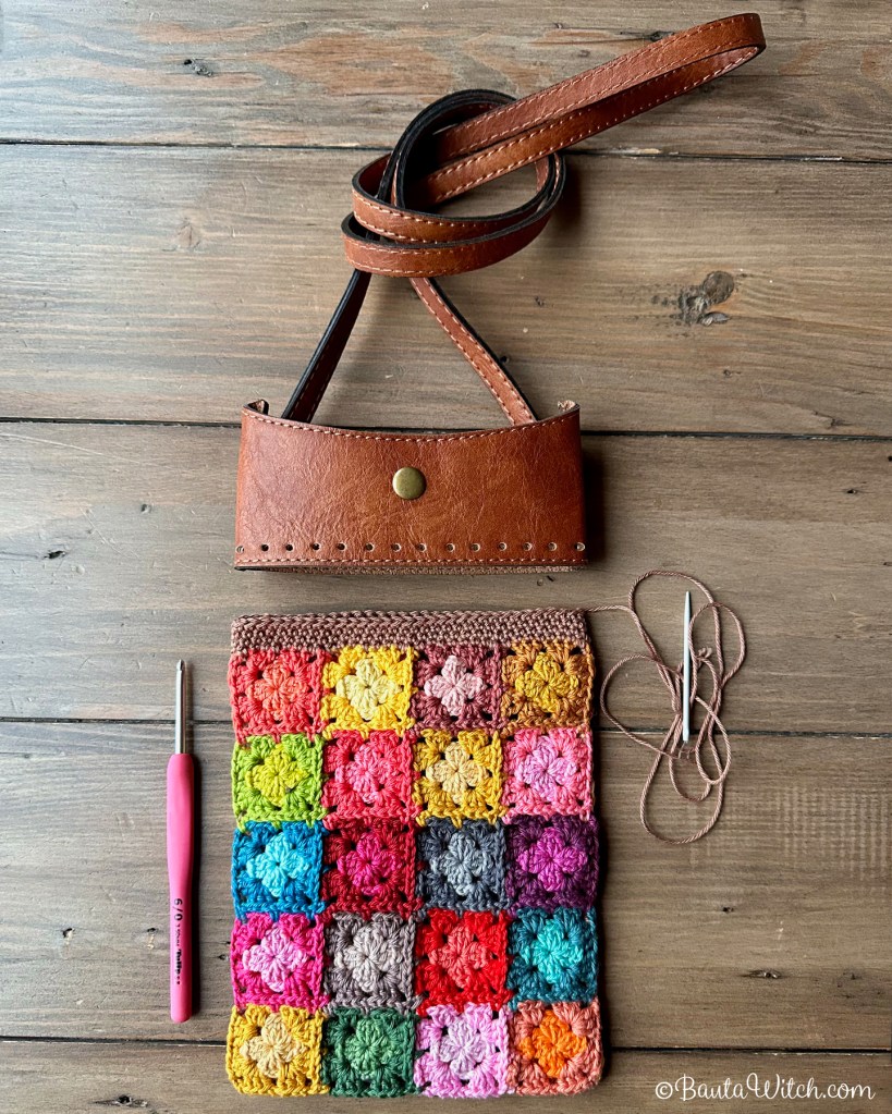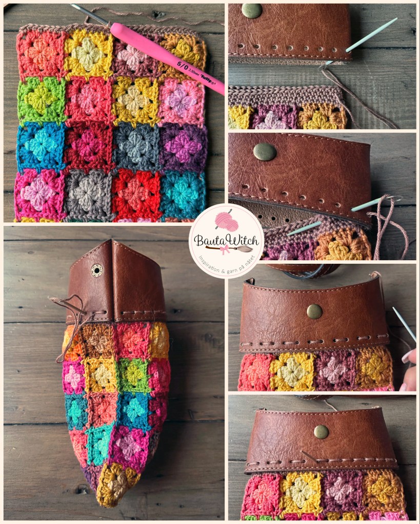 Jag har även gjort ett mönster till en mobilväska med mormorsrutor och den konjaksfärgade ovandelen. Det hittar du här!