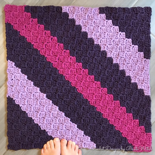 PS. Anledningen till att jag inte har skrivit ut med vilken färg jag virkat respektive varv är att du lika enkelt ser av bilderna i här mönstret vilken färg som jag har använt var. Virkar du en större storlek kommer du behöva virka fler ränder. Du kan då upprepa färgföljden på några av mina eller välja de färger du helt enkelt tycker bäst om.