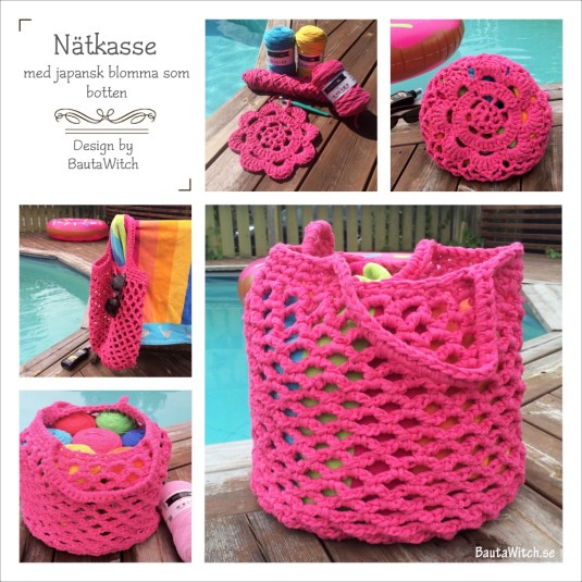 Min kasse är jätterolig och lätt att virka samtidigt som den har det där litet extra pga sin unika botten, som består av en japansk blomma. Jag har virkat den i Ribbon XL (det går åt 2 nystan) och med virknål 10.