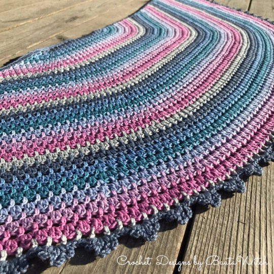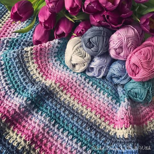 Bli inte avskräckt för att mönstret tycks långt. Att mönstret är långt beror endast på att det förekommer en väldig massa ökningar och de fördelas olika på varven. Maskorna är enkla och passar även dig som är nybörjare! Det handlar endast om stolpar och luftmaskor.