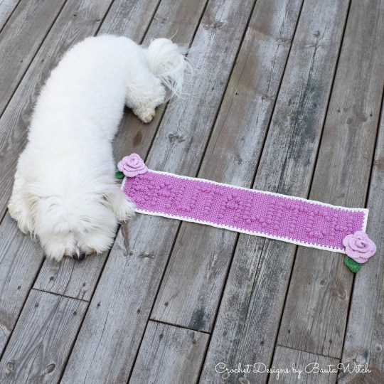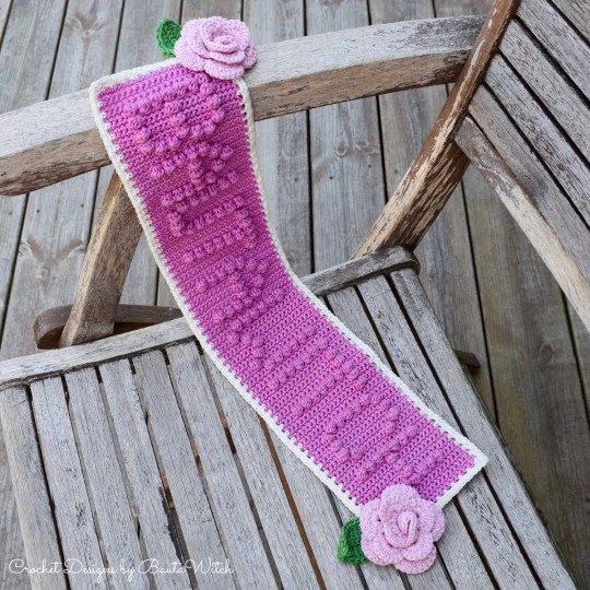 Bli inte avskräckt för att mönstret tycks långt. Att mönstret är långt beror endast på att det förekommer en väldig massa ökningar och de fördelas olika på varven. Maskorna är enkla och passar även dig som är nybörjare! Det handlar endast om stolpar och luftmaskor.