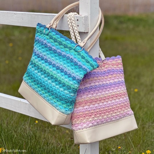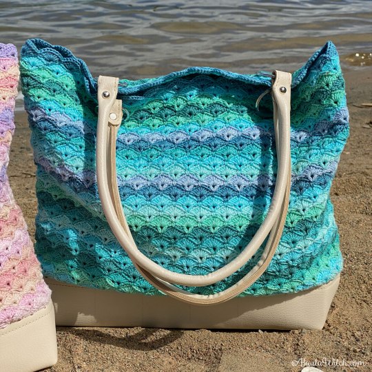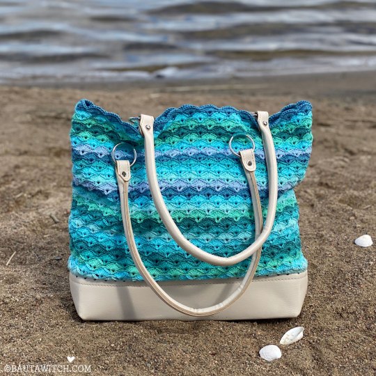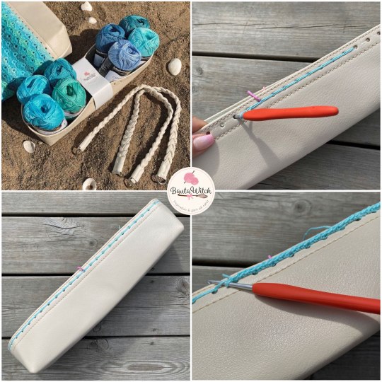 OBS! Var noga med att vrida det virkade runt väskhandtagen så att sömmen hamnar “inåt/neråt” mot väskan och inte på utsidan så den syns.