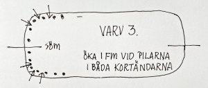 Avslutar med en fast maska i sista hörnet. Klipp av tråden.