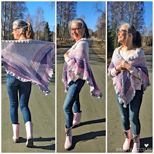 Den här sjalen är en litet varmare variant av volangsjalen, virkad i vår nya underbart mjuka 100% merinoull, DMC Woolly och jag kallar den för ”Romantic Spring Holiday”. Självklart kan du virka den även utan volang med den enklare uddkanten. Jag nämner som hastigast hur du lämpligast gör.